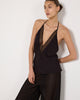 The Silk Mesh Bias Top by St. Agni is crafted from fluid silk and cut on the bias for a naturally draped silhouette. Featureing a deep V neckline, tie-up halter neck, contrast mesh detailing and a low-cut back. Made to be worn tucked in, or loose